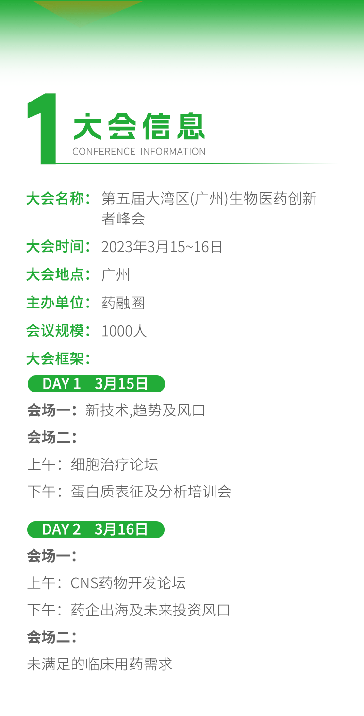 由药融圈主办的第五届大湾区(广州)生物医药创新者峰会将于2023年3月在广州隆重举办,近50位嘉宾将从新技术/趋势及风口/监管政策、CNS药物开发等板块展开分享,旨在解决为满足的临床需求,更有有难度药物的分析方法开发实例、蛋白质表征及分析培训会、非临床药效学设计及评价、非临床安全性设计及评价四大培训班,共同打造行业分享、交流、合作、学习的平台。诚挚的邀请您参会!