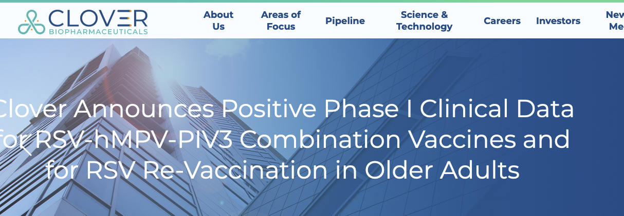 近期,三叶草生物公布其呼吸道联合疫苗(RSV-hMPV-PIV3) 及RSV疫苗重复接种在老年人群的I期临床试验均获得积极数据。