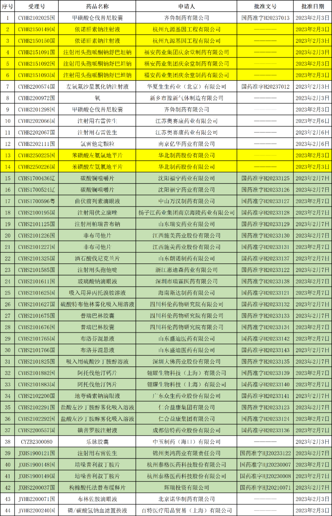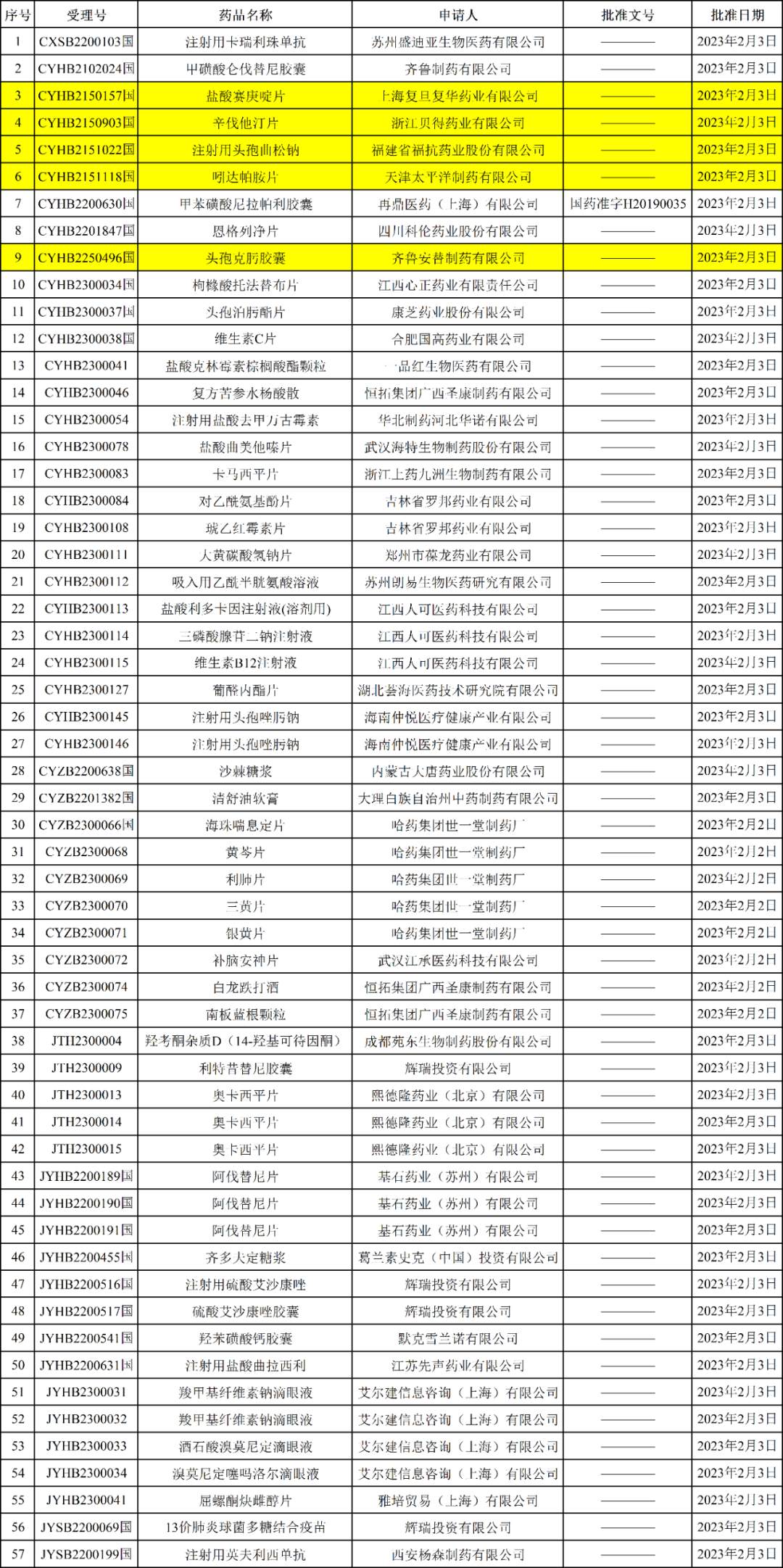 NMPA发布2023年02月09日、02月08日药品批准证明文件送达信息,两天共计101个受理号获批,其中12个为一致性评价受理号,包括: