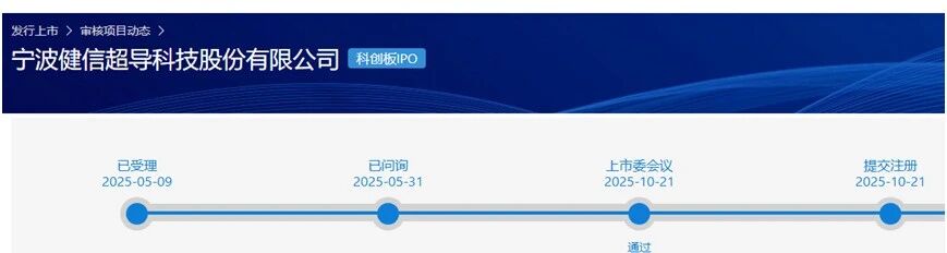 10月21日,上交所上市审核委员会审议并通过了宁波健信超导科技股份有限公司(下称“健信超导”)的科创板IPO申请。