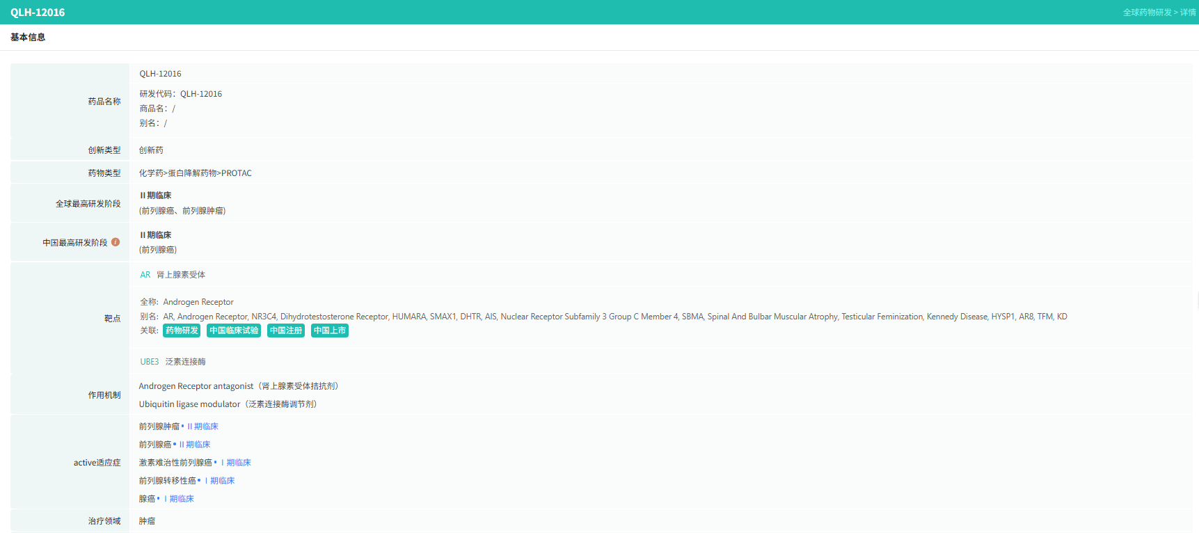 QLH12016在2025年ESMO大会上的亮相,不仅展现了PROTAC技术在mCRPC领域的突破性潜力,更填补了多线耐药患者的治疗空白。其“强效降解、低毒耐受、突破耐药”的特性,有望重塑mCRPC的治疗格局。2023年8月,国家药品监督管理局药审中心(CDE)官网临床试验默示许可栏已公示[2],齐鲁制药1类新药QLH12016胶囊获批临床,可用于治疗包含晚期前列腺癌在内的恶性实体瘤。