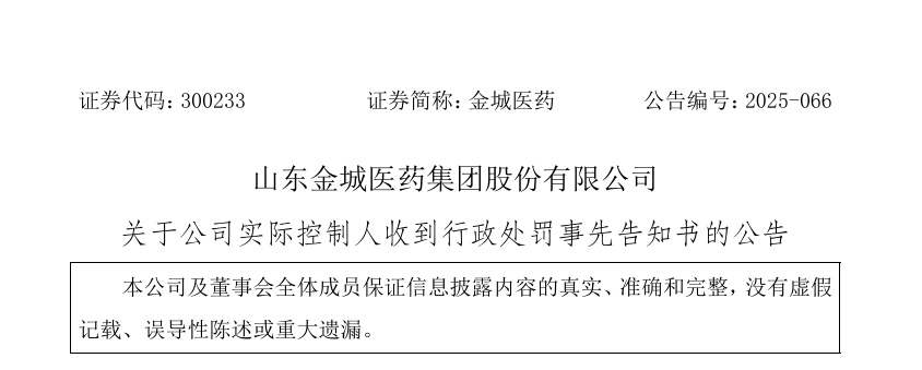近日,金城医药发布公告,因涉嫌操纵证券市场违法违规行为3位高管收到第二次行政处罚事先告知书,3位高管合计处罚金额从约4600万降低至300万。