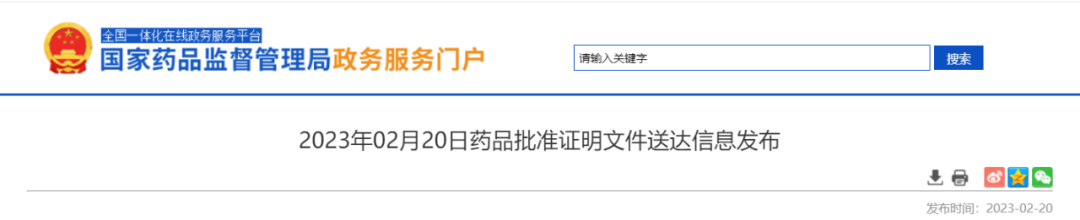 2023年02月20日药品批准证明文件送达信息