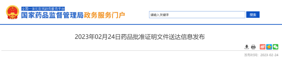 2023年02月24日药品批准证明文件送达信息