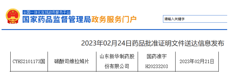 2020年7月,济民可信集团旗下的南京恒生制药首仿的碳酸司维拉姆片获中国国家药品监督管理局批准上市,用于控制透析患者的高磷血症,成为该高端仿制药的国内首仿药。此次山东新华制药是国产第2家获批生产该品种的药企。