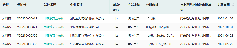 据药融云统计,目前甲磺酸艾立布林注射液国内仅有博瑞制药/无锡紫杉药业(首家申报)、成都西岭源药业/健进制药和浙江星月药物递交了该品种的上市申请,均在审评审批中。此外,戊言医药、皓元医药、正济药业、海门慧聚药业、南京格亚医药、上海步越化工和南通诺泰生物等公司也布局有艾立布林。国内首仿药将会花落谁家,让我们拭目以待。