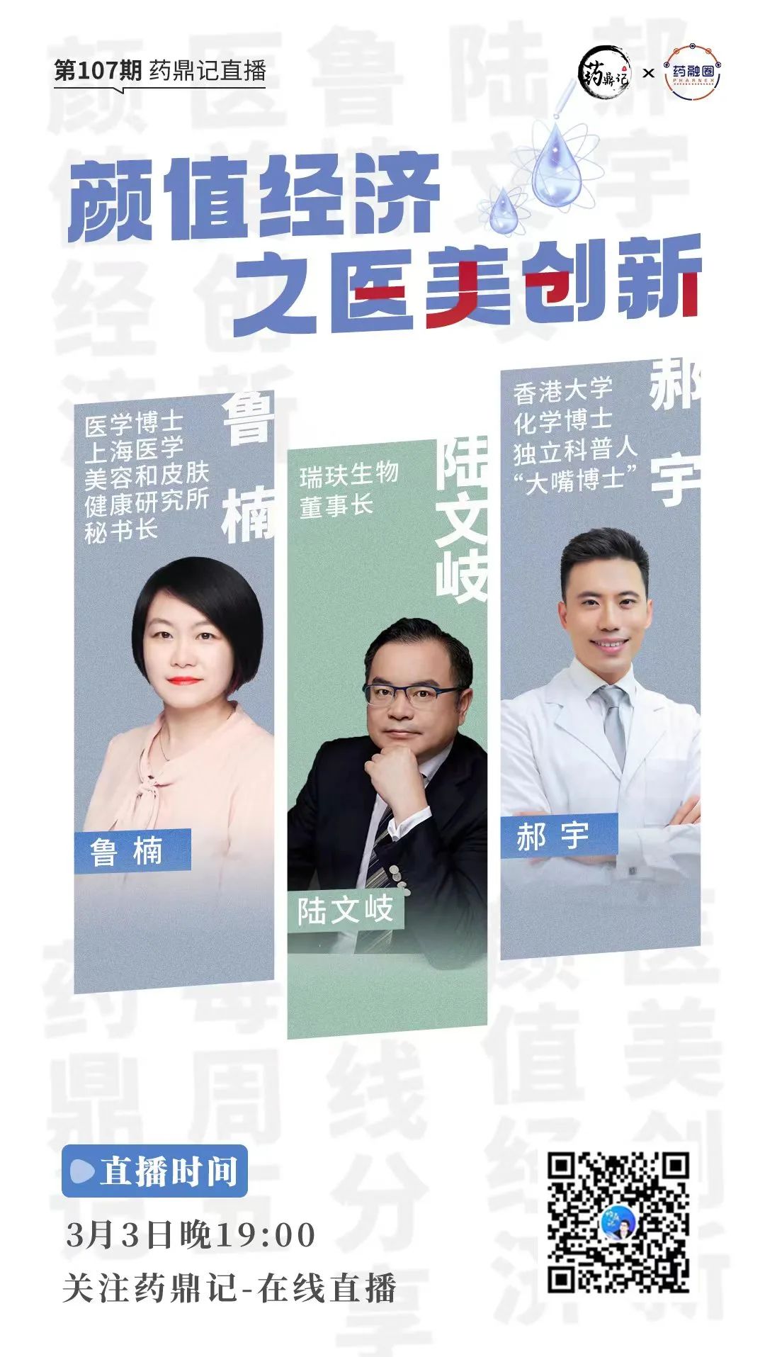 关注药鼎记直播间,本周五晚上19点,“颜值经济之医美创新”直播等你来。
