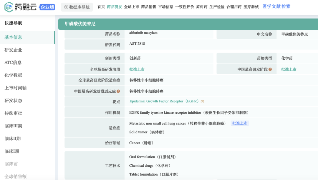 截图来源:药融云全球药物研发数据库