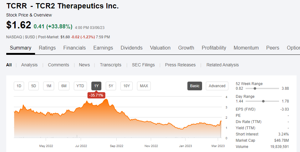 此次拆分大致反映了两家生物技术公司估值的差异,收购前,TCR²的市值低于5000万美元,收购后,TCR²的股价在盘前交易中上涨了45%,收盘上涨33%,至1.75美元;而Adaptimmune的ADS上涨了5.7%,至1.86亿美元,Adaptimmune的市值接近2.9亿美元。