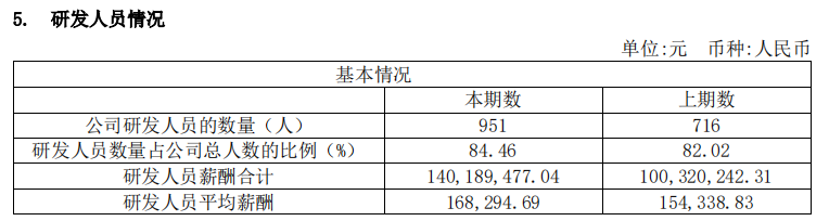 2022年公司研发人员薪酬合计1.4亿元,同比增长40%;研发人员新增235人,达到951人;平均薪酬16.83万元,同比增长9%。