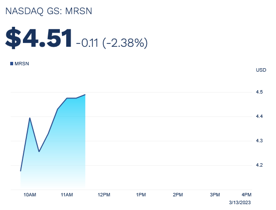 3月13日开盘,Mersana股价跌超10%,截止发稿,公司股价为每股4.51美元,市值4.87亿美元。