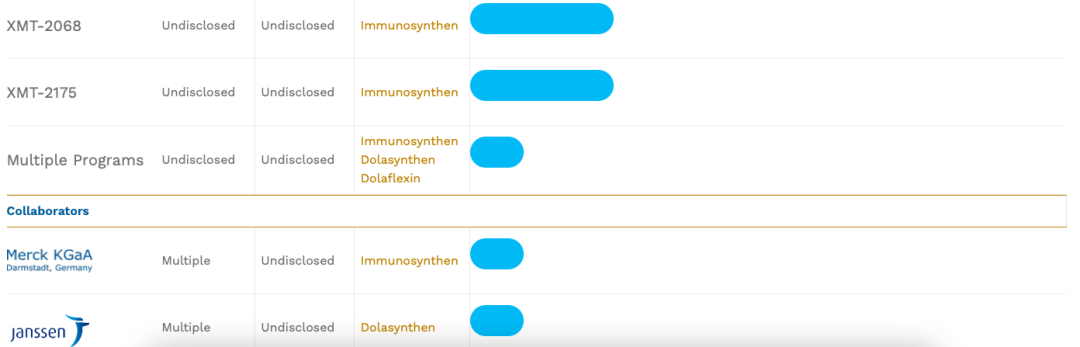 Mersana的管道还包括主要候选产品UpRi、XMT-1660和其他早期资产。UpRi是一种靶向NaPi2b的DolaflexinADC药物,正在UPLIFT中研究,UPLIFT是一项针对铂耐药卵巢癌患者的单臂注册试验。XMT-1660是一种在第一阶段临床试验中靶向B7-H4的DolasynthenADC药物。