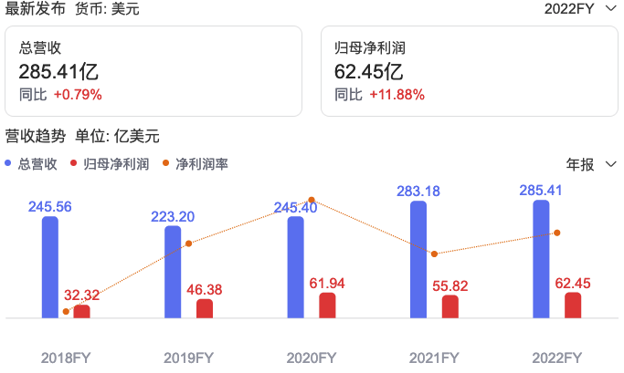 2018-2022年礼来制药营收利润状况