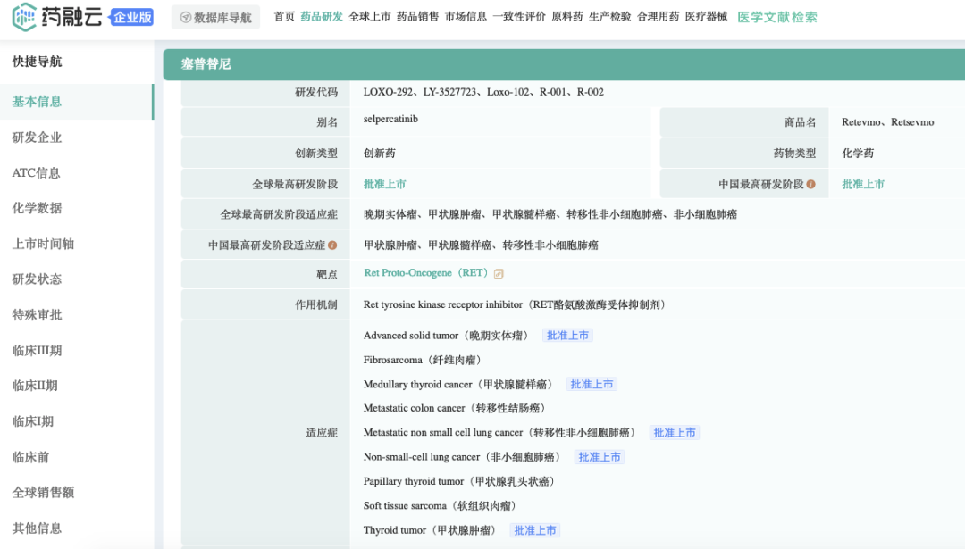 截图来源:药融云全球药物研发数据库