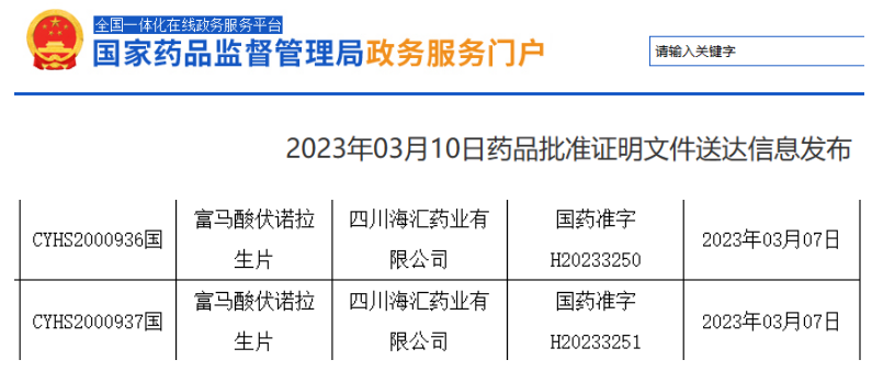 据NMPA官网公示,扬子江药业子公司四川海汇药业的富马酸伏诺拉生片获批上市,视同过评,成为国内继山东新时代药业后,国产第2家获批生产该3亿大涨285%P-CAB抑酸药物的企业。