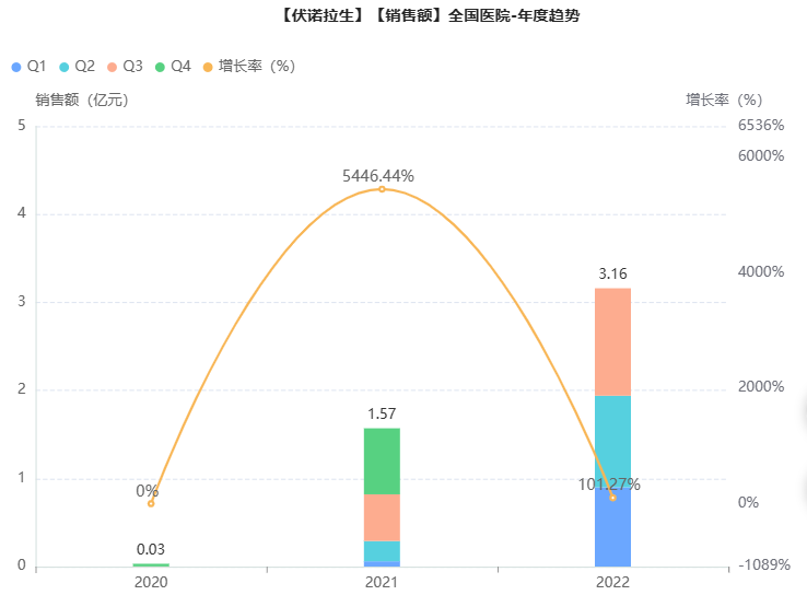 2019年底,武田向我国国家药监局递交的富马酸伏诺拉生片进口上市申请被批准,用于治疗反流性食管炎,商品名:沃克,成为首款获批进入中国市场的P-CAB抑酸药物。2020年底,伏诺拉生成功进入国家医保药品目录,定价为28元/20mg。据药融云统计,2021年沃克院内销售额一举破亿,达到1.57亿元。2022年前三季度,市场表现不俗,院内销售额超3亿元,同比增长了285%,上升趋势明显,前景可观。