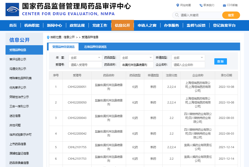 盐酸右美托咪定鼻喷剂由恒瑞医药自主研发,属于改变给药途径且尚未在国内外上市的制剂。此前,恒瑞医药发布公告称盐酸右美托咪定鼻喷雾剂被CDE作为符合儿童生理特征的儿童用药品新品种、剂型和规格纳入拟优先审评品种公示名单。据药融云数据库统计,盐酸右美托咪定鼻喷剂从2021年9月29日被CDE承办后,到此次获批临床,总共用时533天。