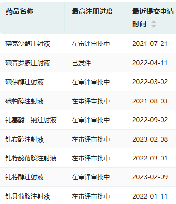 倍特药业仿制药申报上市的造影剂(微信搜索"药融云小程序"进行相关更多数据查询)