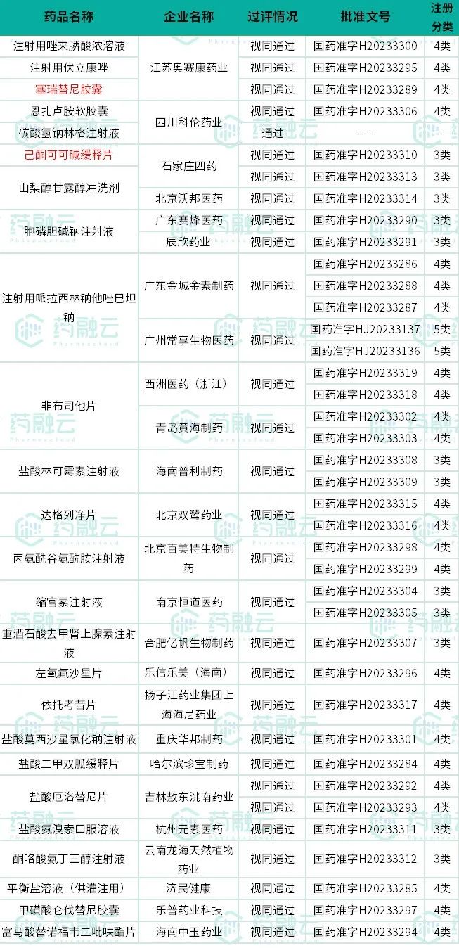 截图来源:药融云过评汇总数据库