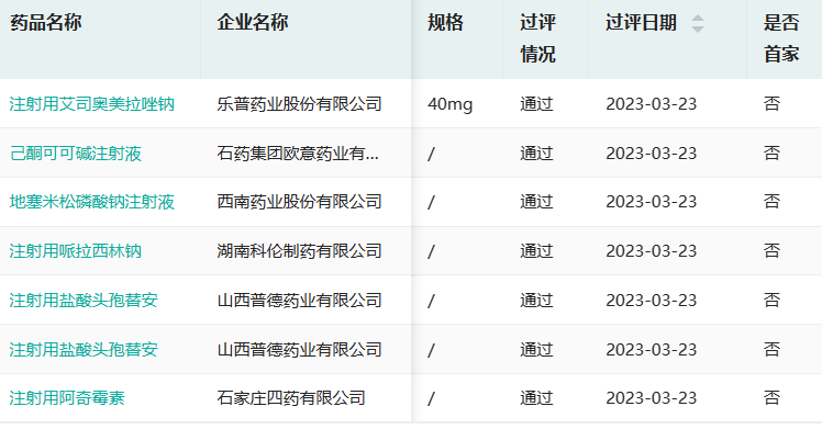 3.23日仿制药通过一致性评价信息