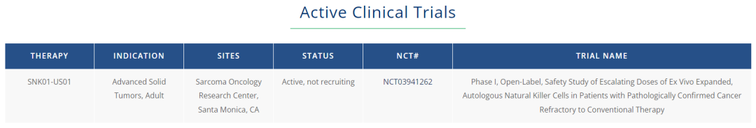 NKGen致力于利用专有细胞扩增和细胞激活技术开发自体和同种异体NK细胞疗法。公司核心产品是SNK01,是一款自体NK细胞疗法,从患者血液中提取的高纯度NK细胞,扩增并激活后回输患者体内,目前在美国、韩国、墨西哥等地开展临床研究。根据公司网站,NKGen的同种异体NK细胞疗法SNK02于2022年第四季度获得IND批准,并计划于2023年上半年开始实体瘤的I期研究。