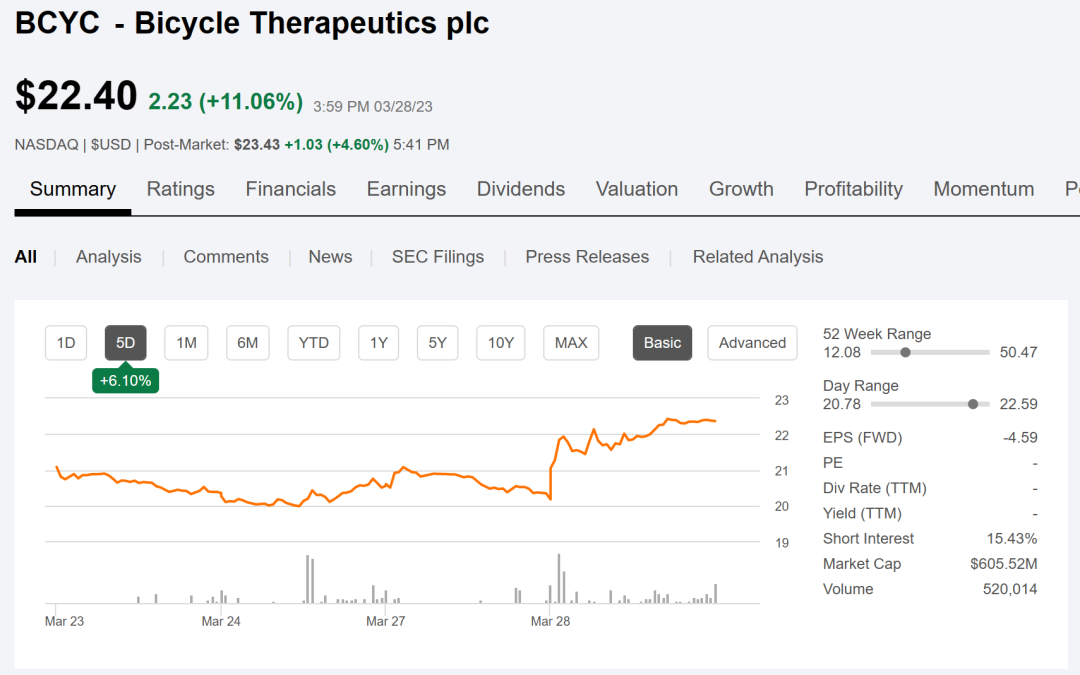 受此消息影响,Bicycle公司的股价在周二上涨11.06%,目前总市值6.05亿美元。