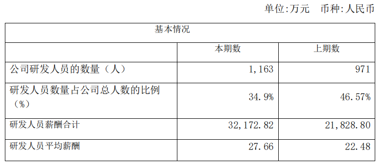 据荣昌生物2022年业绩发布显示,截止2022年底,公司拥有研发人员1163人,占公司总人数34.9%,新增192人。2022年研发人员平均薪酬27.66万元,同比增长23%;研发人员薪酬合计3.22亿元,同比增长48%。