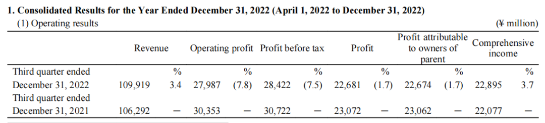 近期,日本小核酸药物龙头公司Nippon Shinyaku发布2022年财年(2022.3.31-2023.4.1)三季报:前三个季度总营收为1099亿日元,折合人民币57.8亿元,同比3.4%,净利润226.8亿日元。