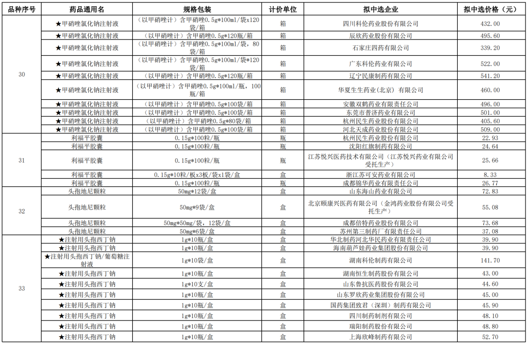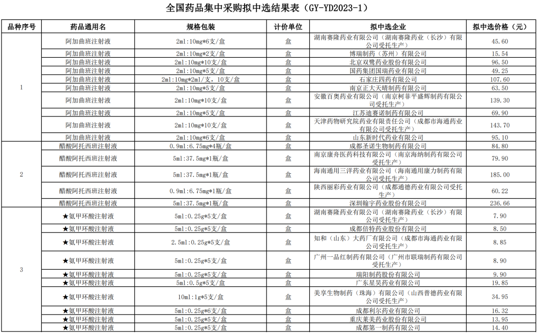 全国药品集中采购拟中选结果表(GY-YD2023-1)