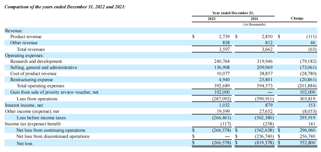 总而言之,2022年蓝鸟生物推出了两款重磅基因疗法,2023年它计划对第三种基因疗法lovo-cel进行商业化。蓝鸟生物预计2023年全年的现金消耗将在2.7亿~3亿美元。