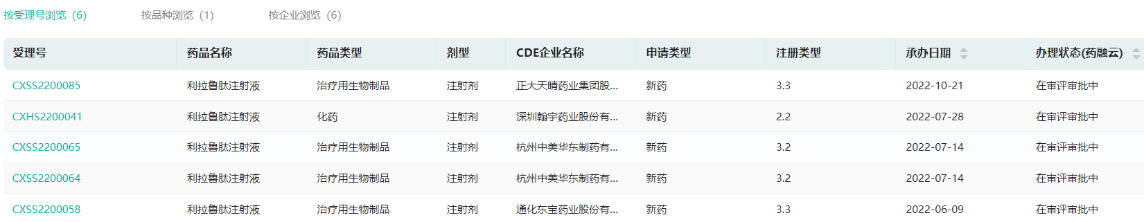 截图来源:药融云中国药品审评数据库