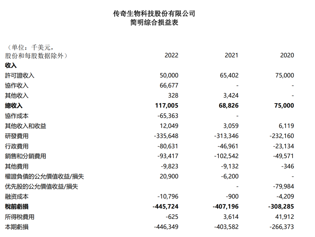 3月31日,传奇生物2022年财报公布,财报显示,公司2022年全年收入为1.17亿美元,同比增长70%,年度净亏损为4.463亿美元,研发费用为3.356亿美元,同比增长7%。截至2022年12月31日,传奇生物拥有约10亿美元现金及现金等价物、定期存款和短期投资。