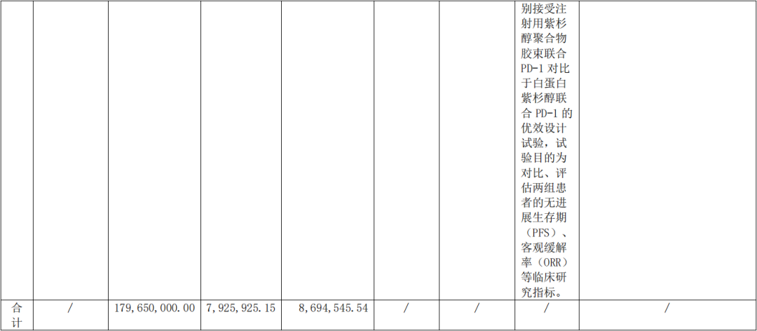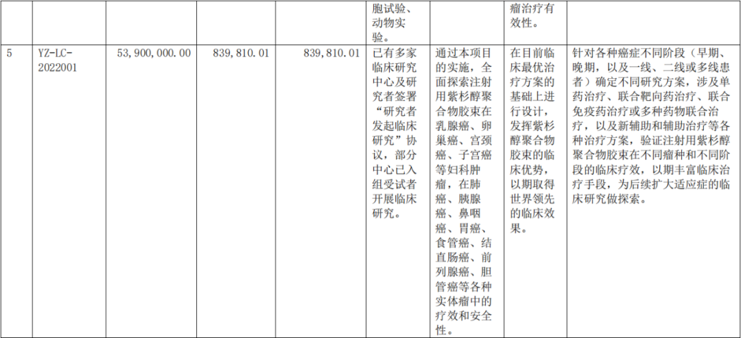 针对公司核心产品注射用紫杉醇聚合物胶束,由研究者发起或公司筹划并开展的Ⅱ期、Ⅲ期临床试验20余项,涉及的癌种包含乳腺癌、肺癌、胰腺癌、胃癌、胆管癌、结直肠癌、食管癌、头颈部肿瘤和卵巢癌等癌种。其中,针对乳腺癌的扩大适应症Ⅲ期临床试验已获得《药物临床试验批准通知书》;针对晚期肺鳞癌、联合PD-1的Ⅲ期临床试验已向国家药监局提交申请。除了进行紫杉醇及紫杉烷类胶束产品的拓展,公司已开展针对实体瘤的两种靶向性PMC(多肽偶联纳米胶束)药物的研发。