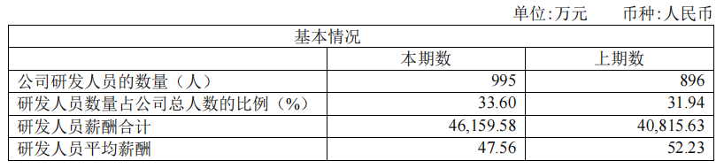 截至报告期末,公司拥有2,961名员工,其中995名员工负责药物研发,989名员工负责产品商业化,561名员工负责生产,其余员工负责财务、行政、IT、人力资源等支持性工作。君实生物2022年报显示:去年公司研发人员新增99人,达到995名,占公司总人数33.6%,去年研发人员平均薪酬47.56万元。