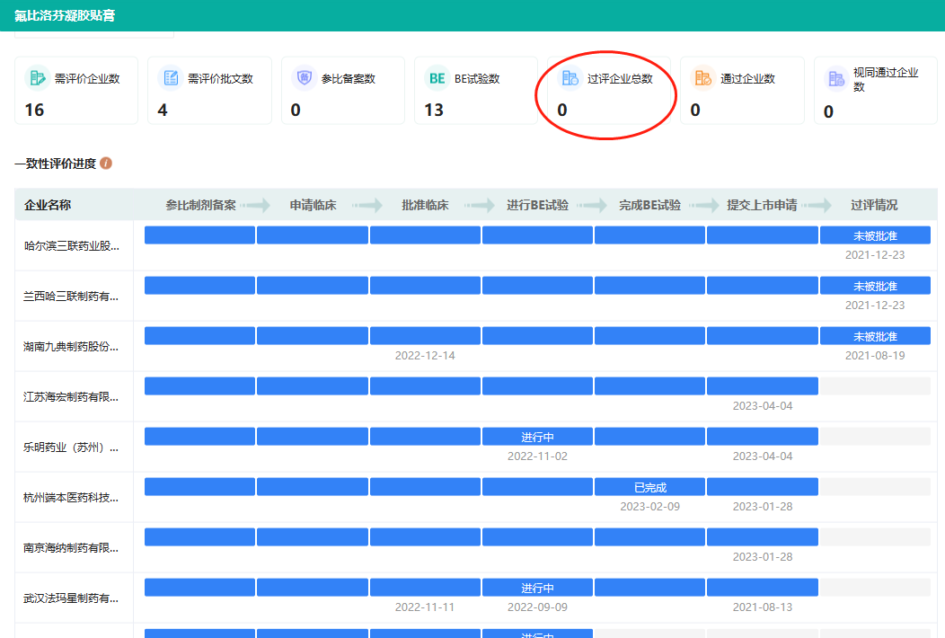 氟比洛芬凝胶贴膏过评概况和部分进度
