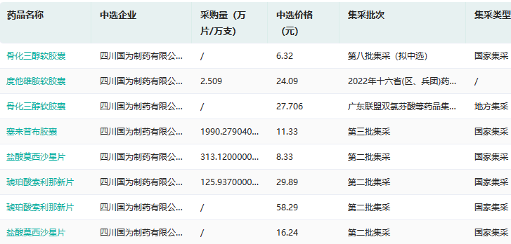 值得一提的是,在刚刚过去的第八批国采中,成都国为生物的骨质疏松症治疗药物骨化三醇软胶囊(商品名:甘同®)以第一顺位成功中选,是国为医药中选的第五个国家集采品种。