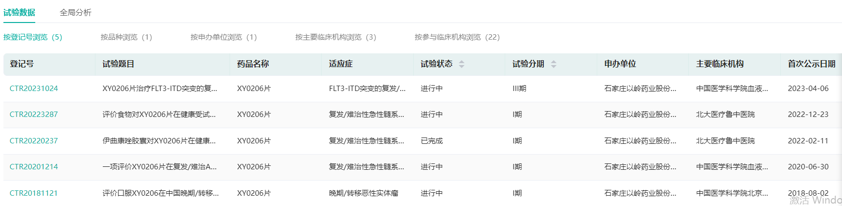 截图来源:药融云中国临床试验数据库