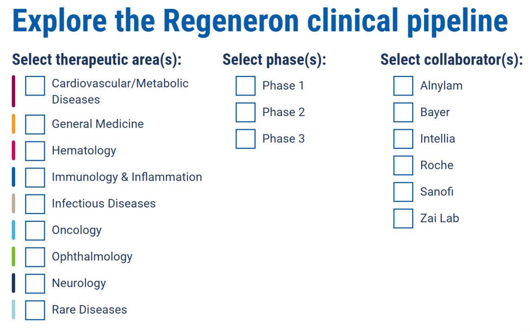 再生元公司研发管线以及企业合作伙伴