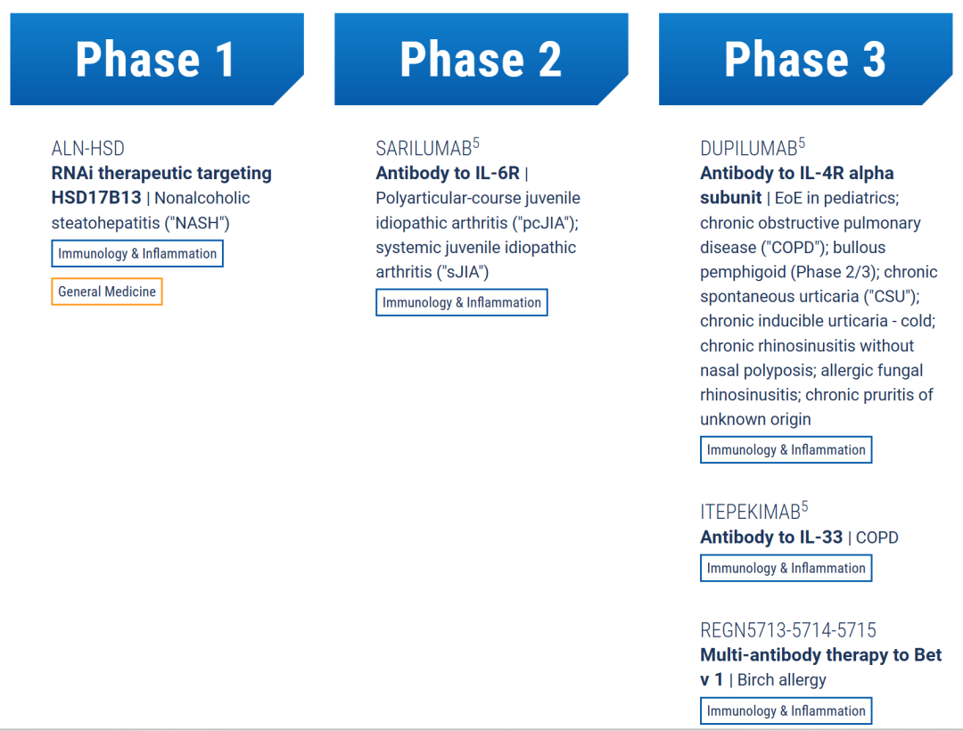 再生元过敏性和炎症性疾病研发管线