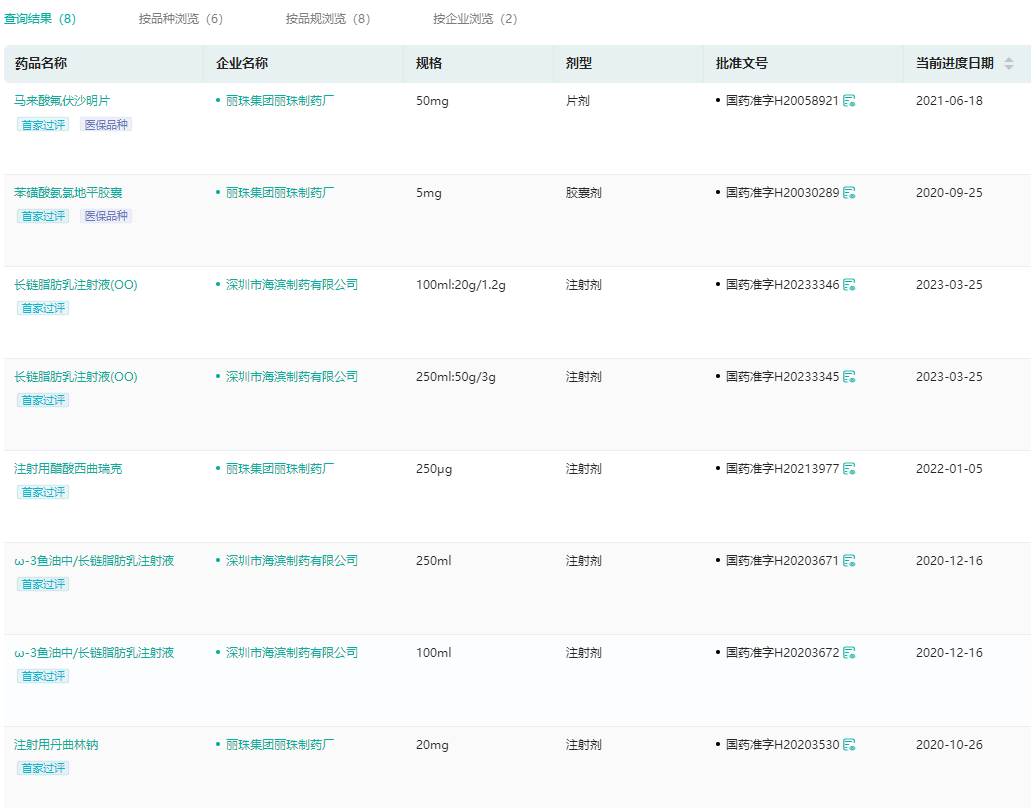 至此,丽珠集团共有17个品种(20品规)通过/视同通过一致性评价,覆盖抗感染、消化系统与代谢、心血管系统、神经系统、血液系统等治疗领域。其中ω-3鱼油中/长链脂肪乳注射液、注射用丹曲林钠、注射用醋酸西曲瑞克、苯磺酸氨氯地平胶囊、长链脂肪乳注射液(OO)和马来酸氟伏沙明片等6个品种均为首家过评。在刚刚结束的第8批国家集采中,注射用伏立康唑及注射用头孢地嗪钠拟中选。