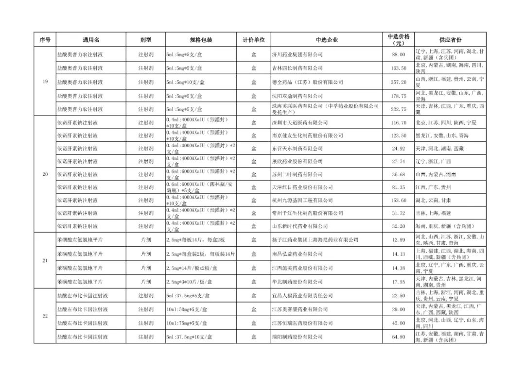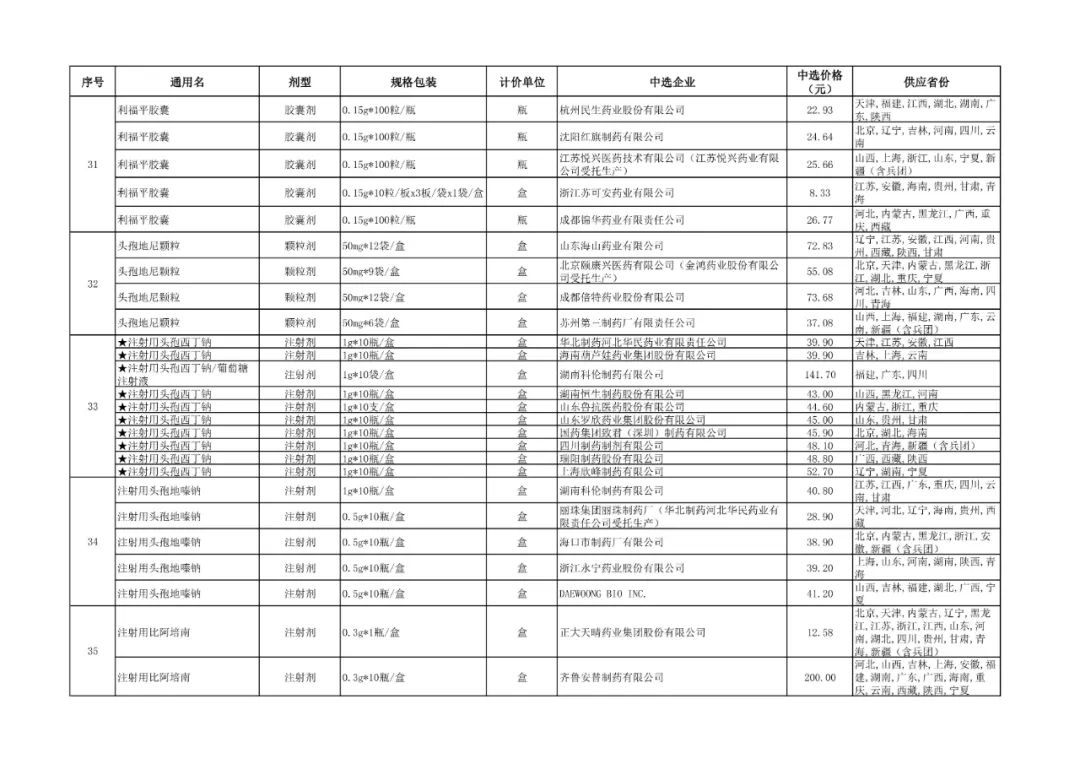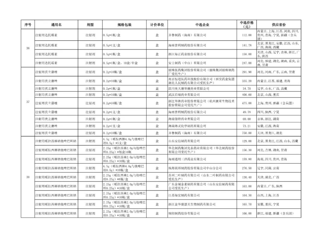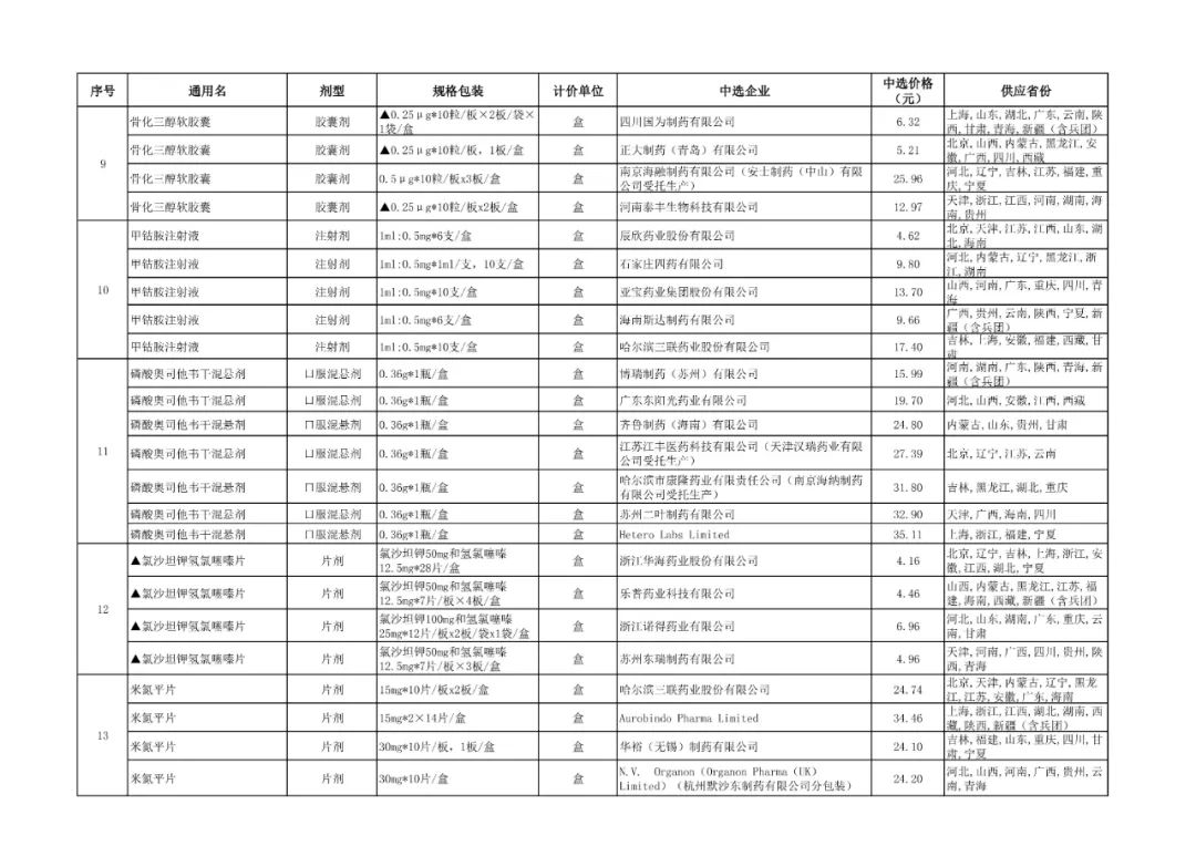 3、全国药品集中采购中选品种供应清单