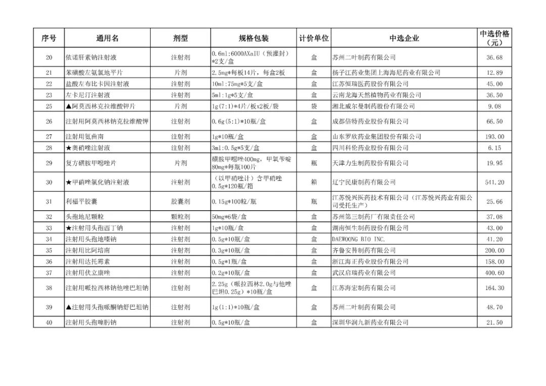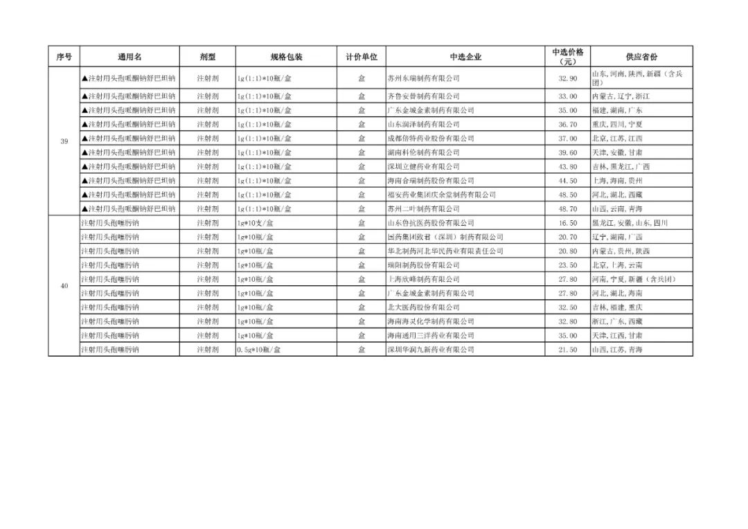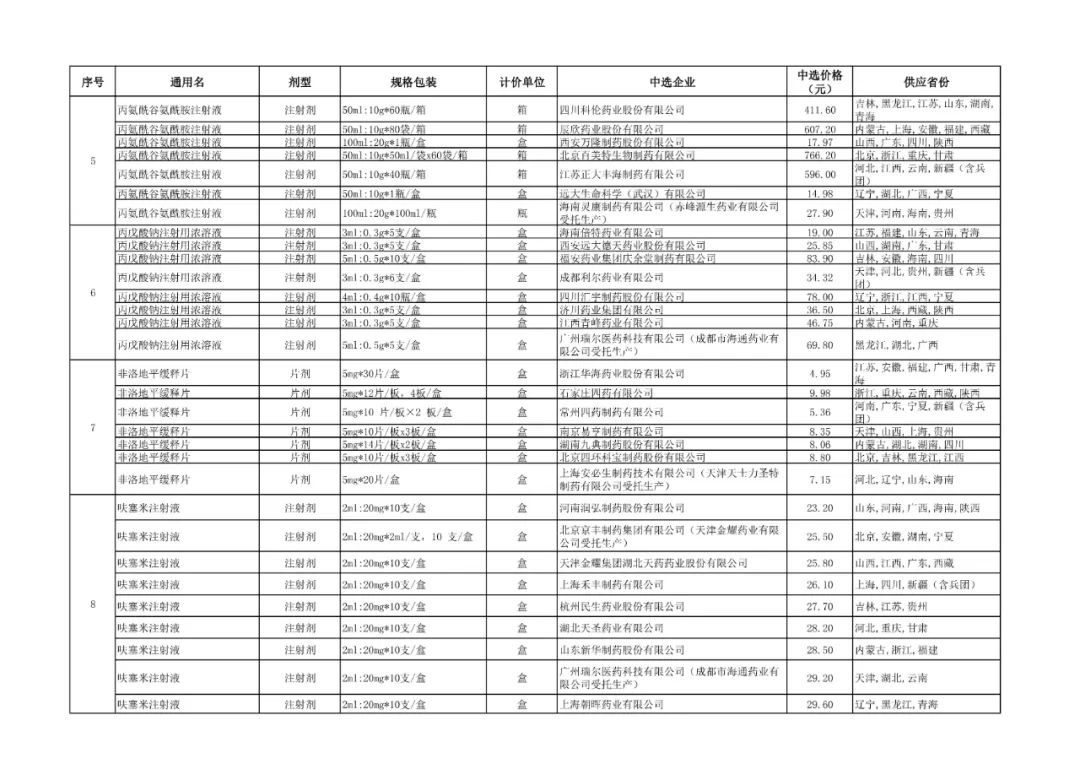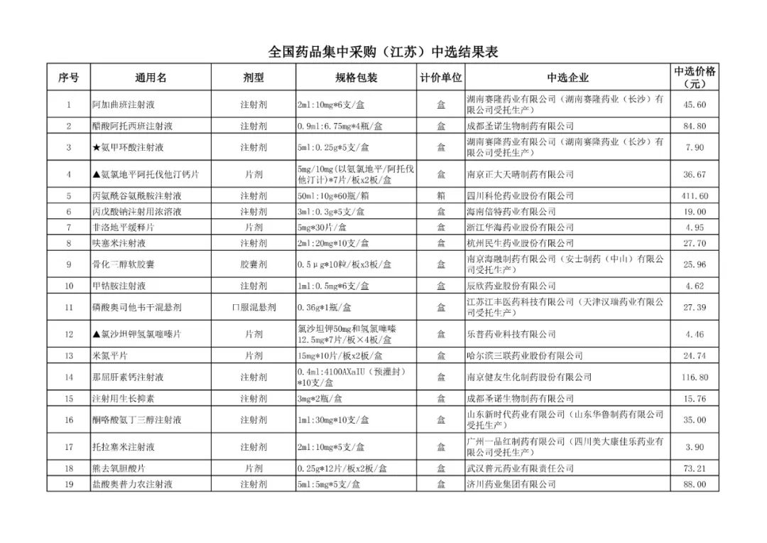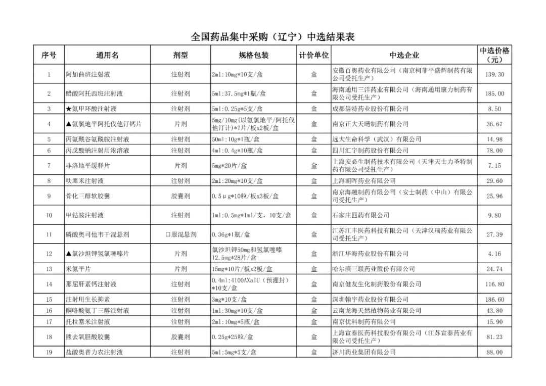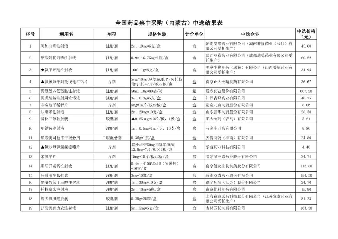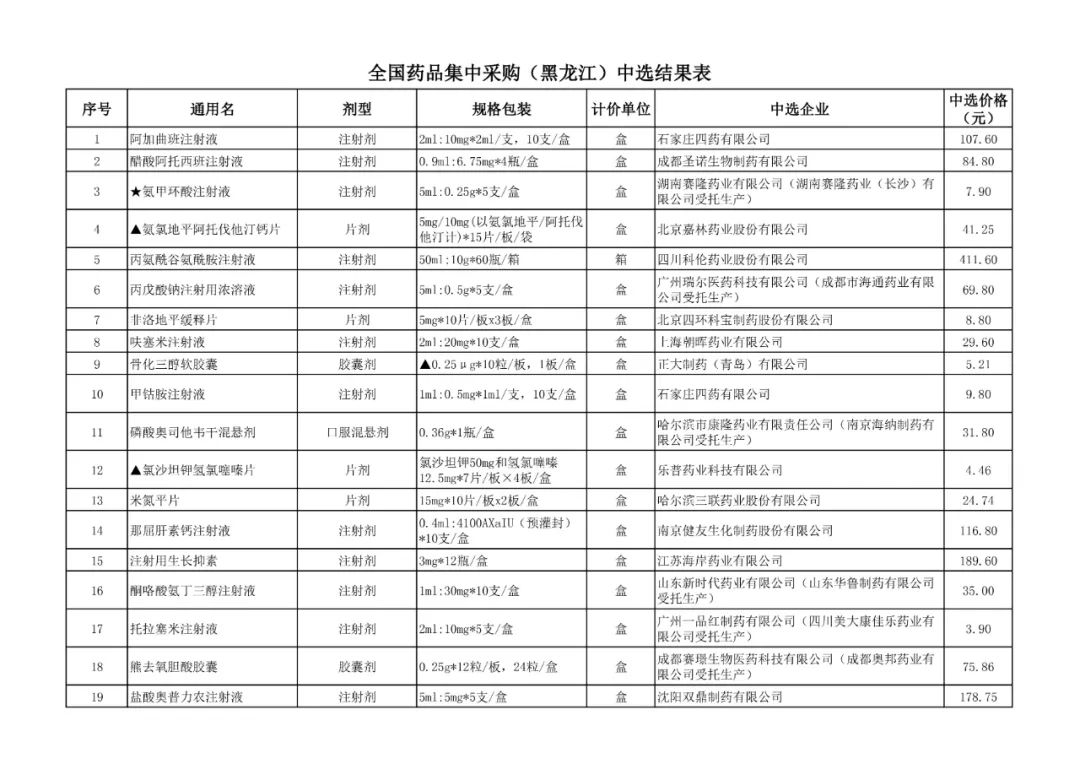 1、全国药品集中采购中选结果表