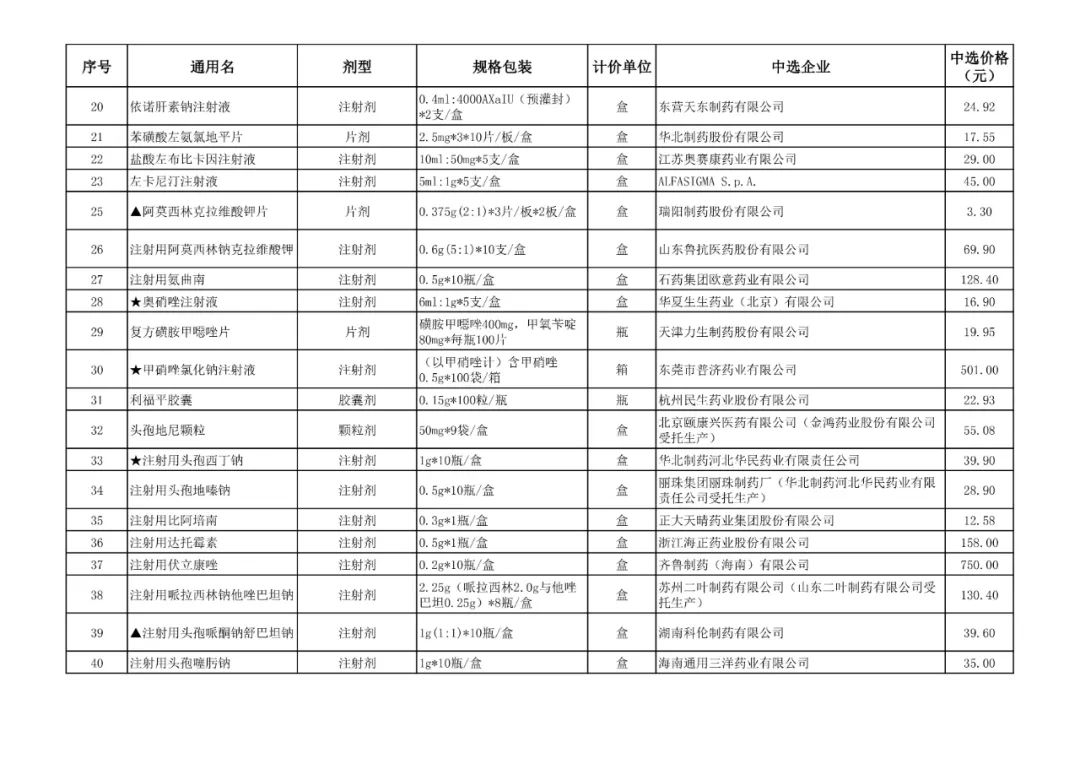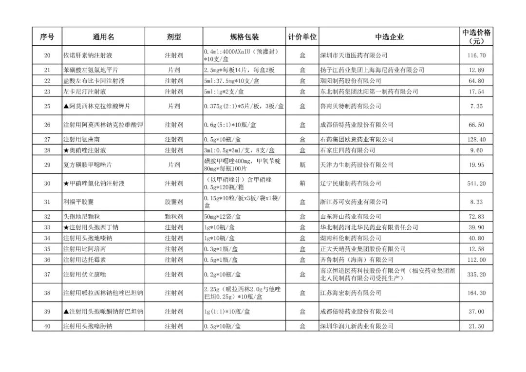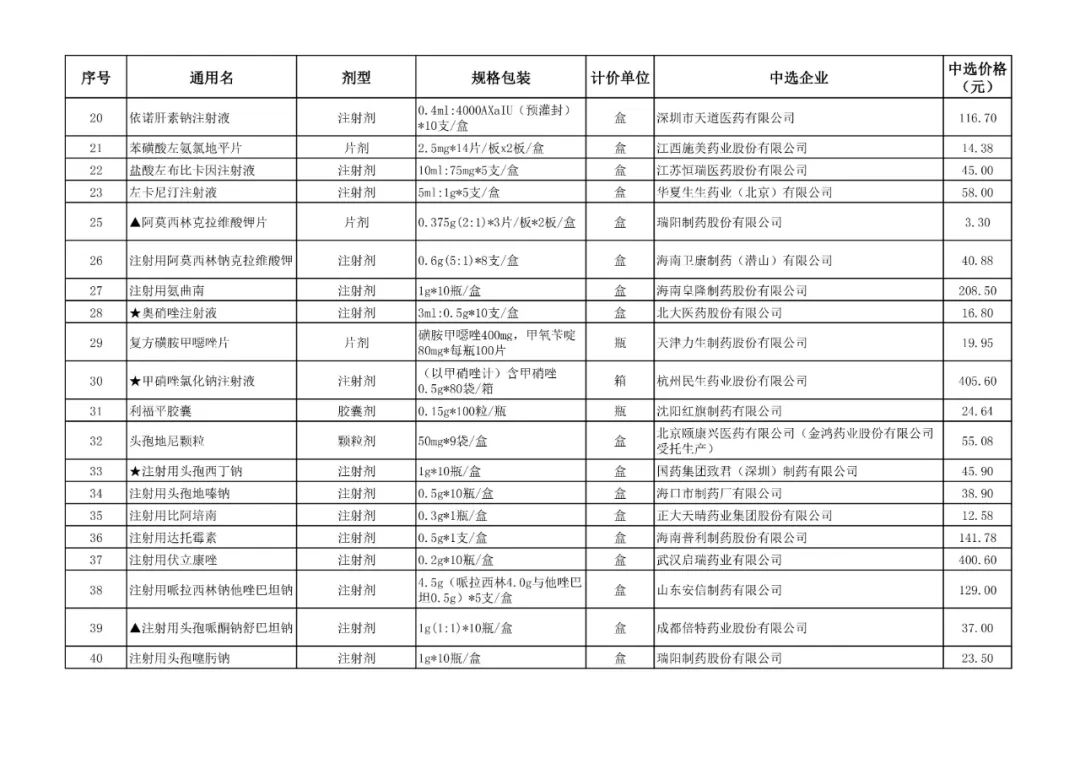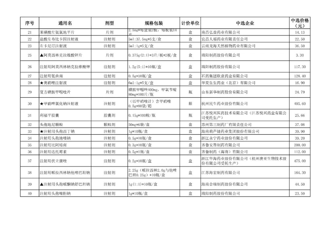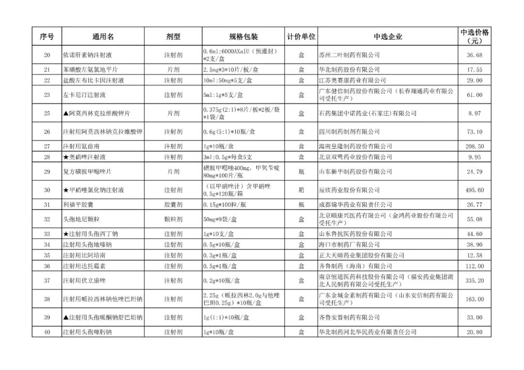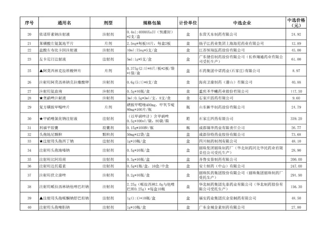 1、全国药品集中采购中选结果表