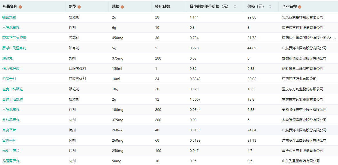 一键查询各省中标中成药取消挂网信息(部分)