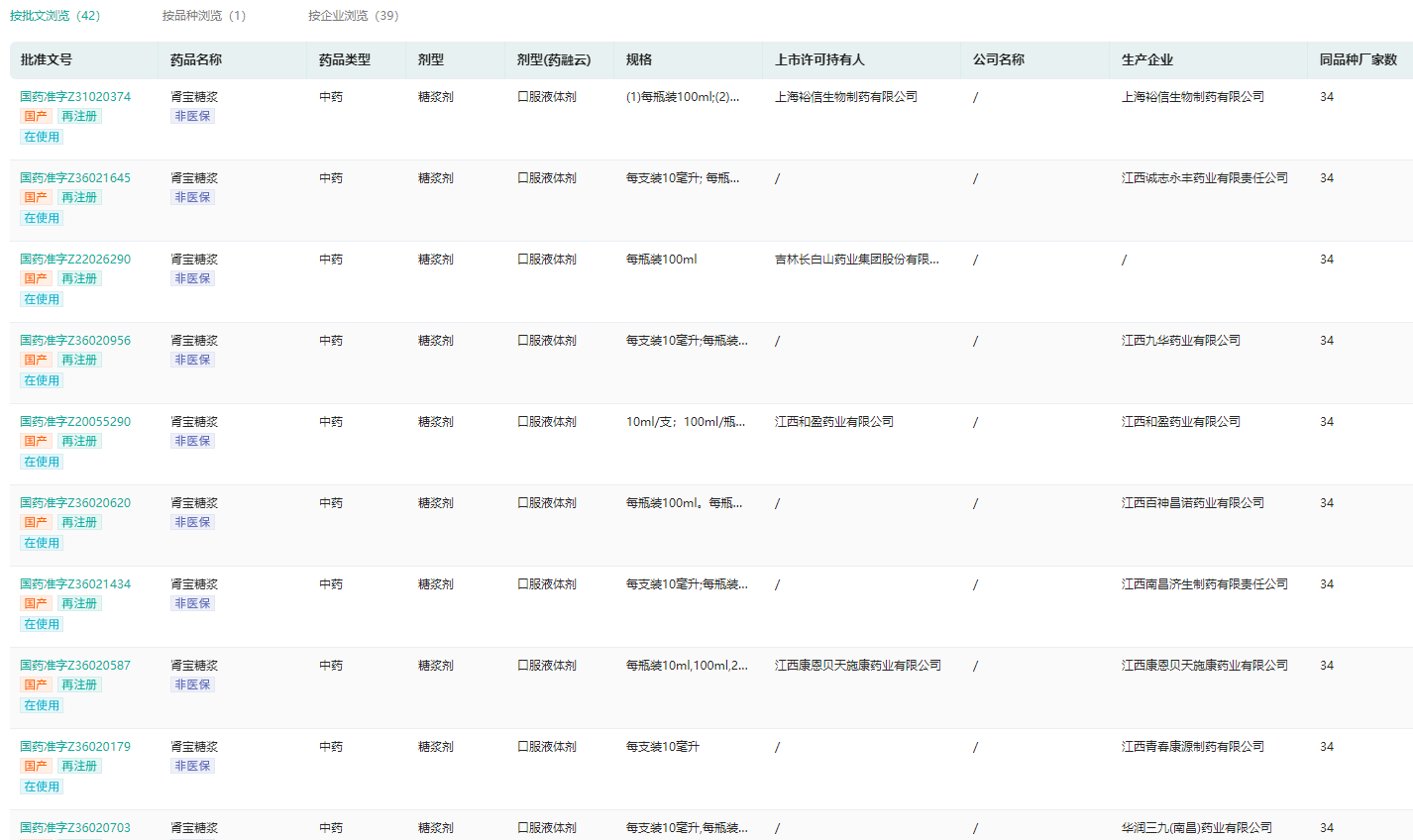 肾宝糖浆生产批文查询(部分)