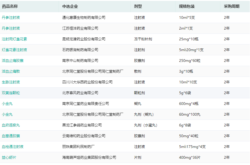一键查询2021年中成药省际联盟集中带量采购信息(部分)