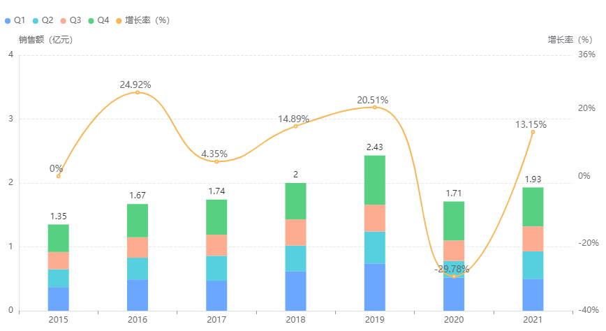蛇胆川贝液全国医院终端年度销售趋势