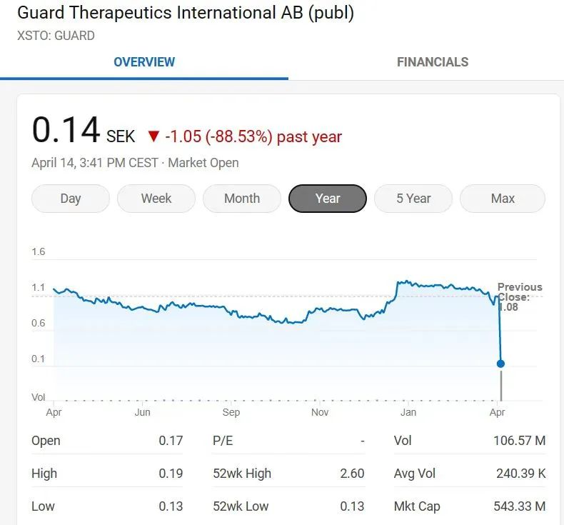 Guard表示将遵循DMC建议。受此消息影响,Guard Therapeutics股价下跌近90%。