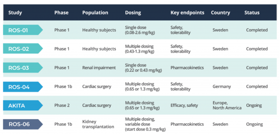 2022年4月,全球2期研究(AKITA)中的第一位患者随后接受了RMC-035给药。该研究是在接受心脏直视手术并因此有发生急性肾损伤风险的患者中进行的。