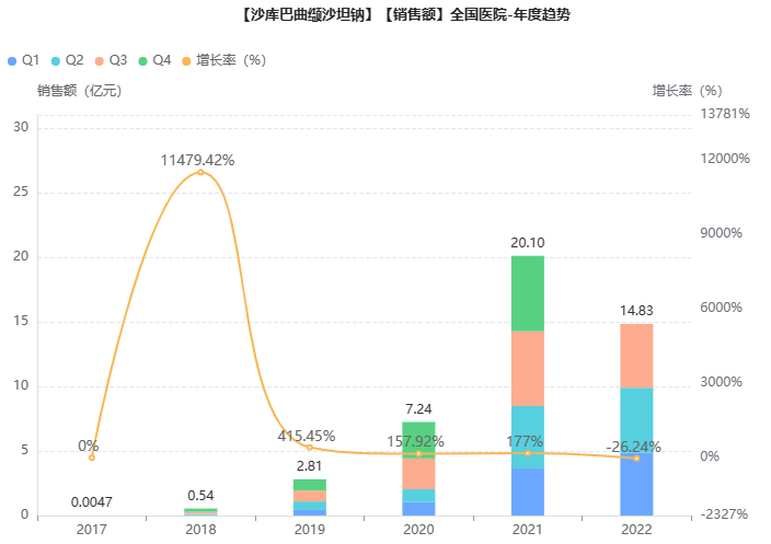 据药融云数据库,全球首款ARNi类药物是来自诺华的诺欣妥(沙库巴曲+缬沙坦),用于治疗高血压和射血分数降低的心力衰竭患者。诺欣妥已在国内抗高血压药物市场中销售多年,2021年院内销售额大涨177%,一举突破20亿。S086作用机制与诺欣妥相似,且前期诺欣妥市场教育已较完善,S086上市后有望快速放量。